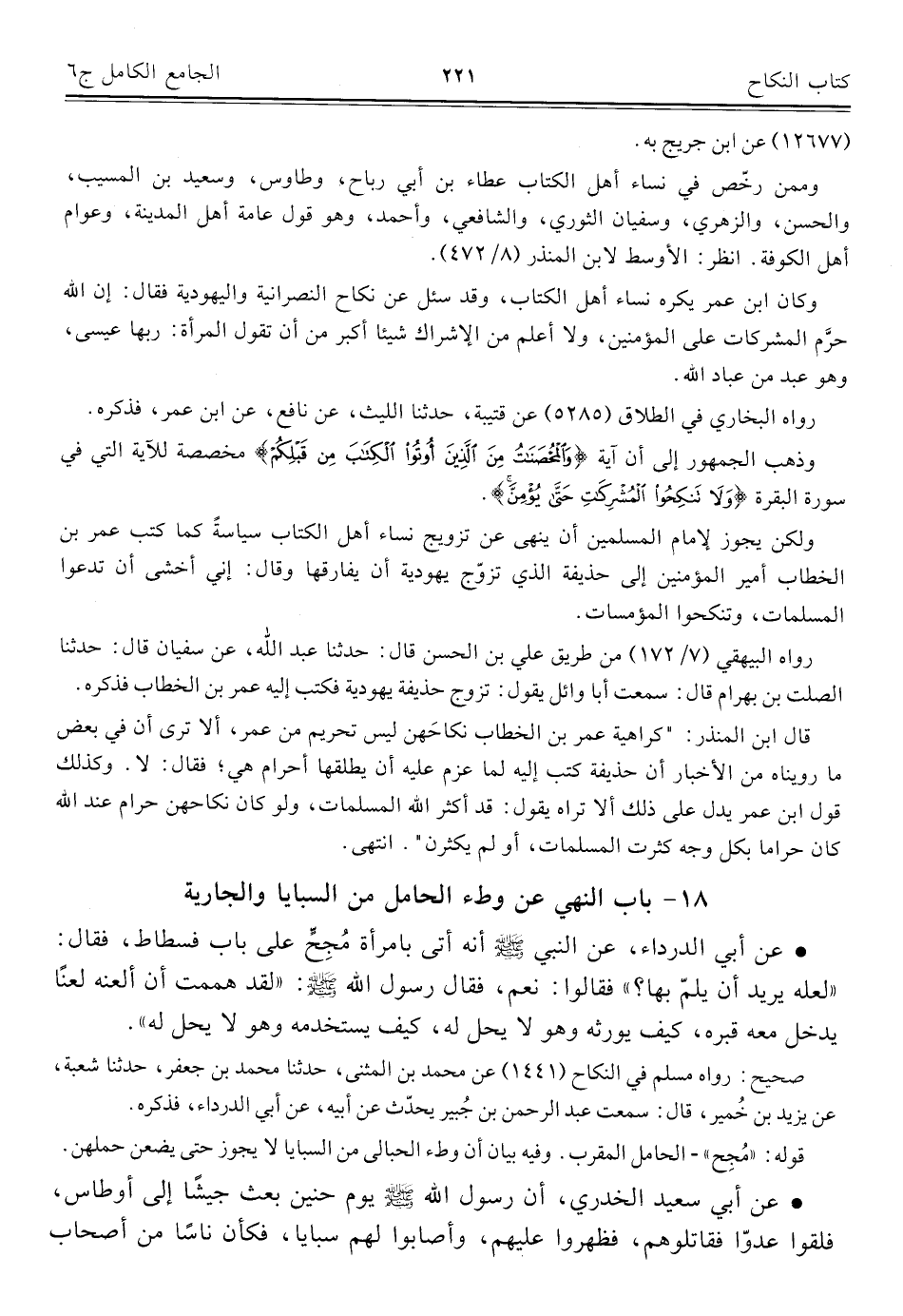 كتاب الجامع الكامل في الحديث الصحيح الشامل المرتب على أبواب الفقه (اسم الجزء: 6)