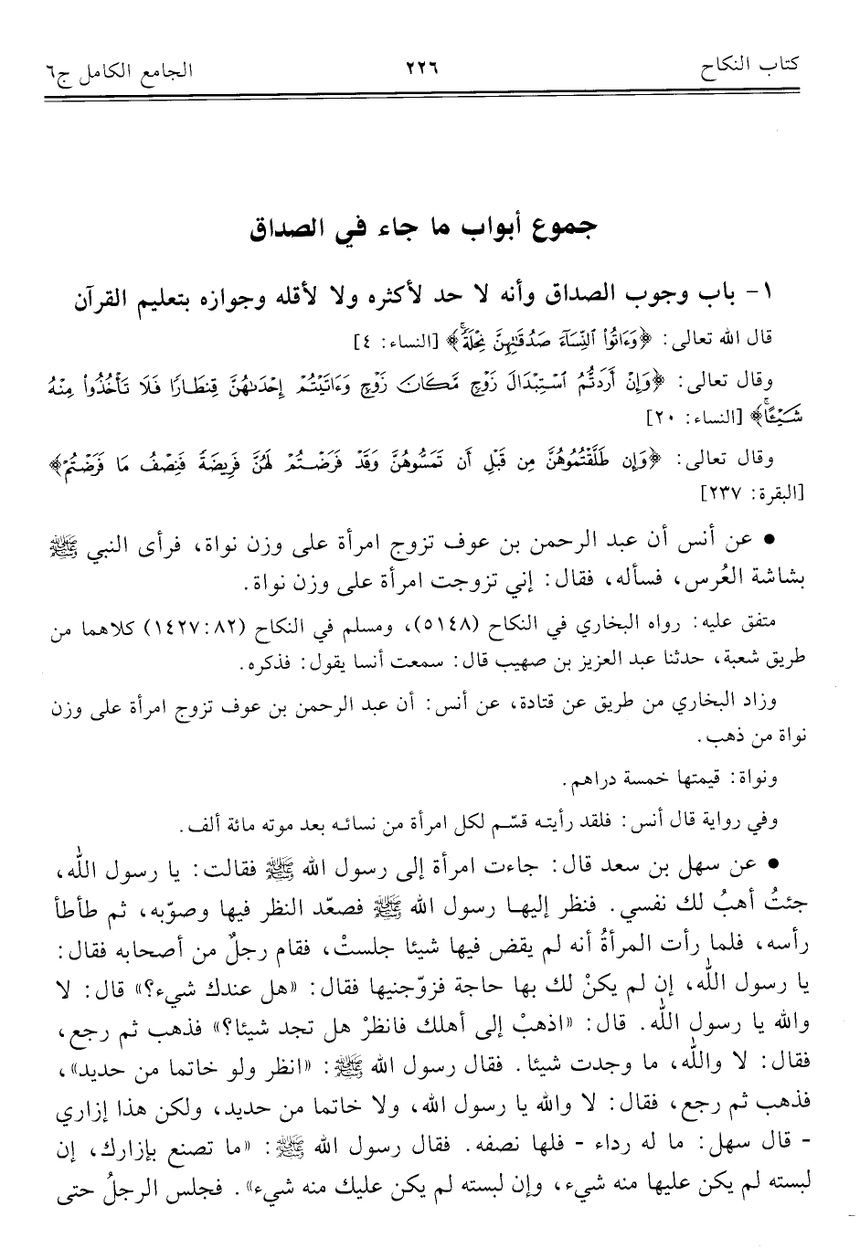 جموع أبواب ما جاء في الصداق