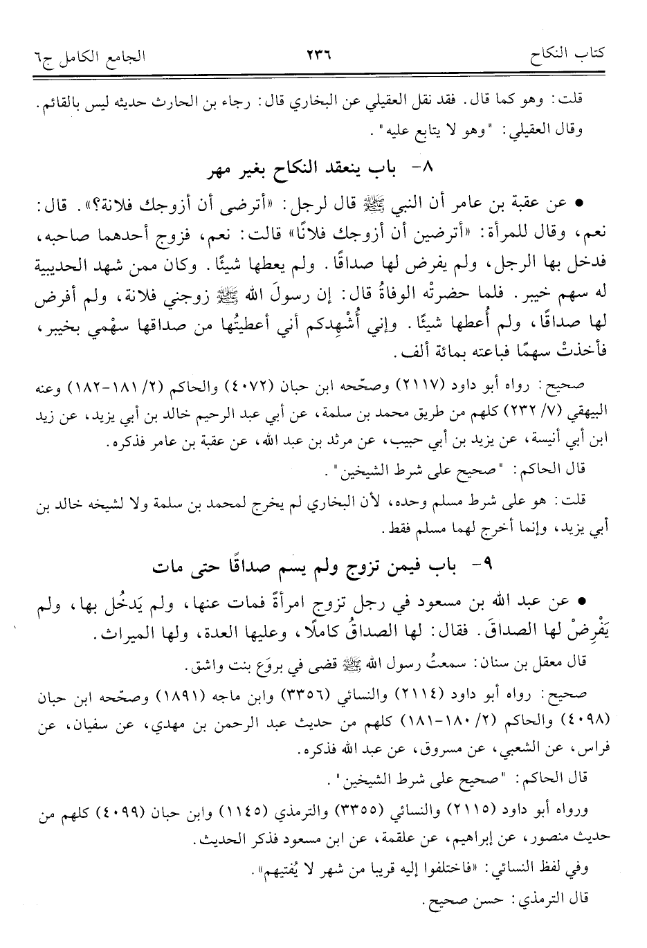 كتاب الجامع الكامل في الحديث الصحيح الشامل المرتب على أبواب الفقه (اسم الجزء: 6)