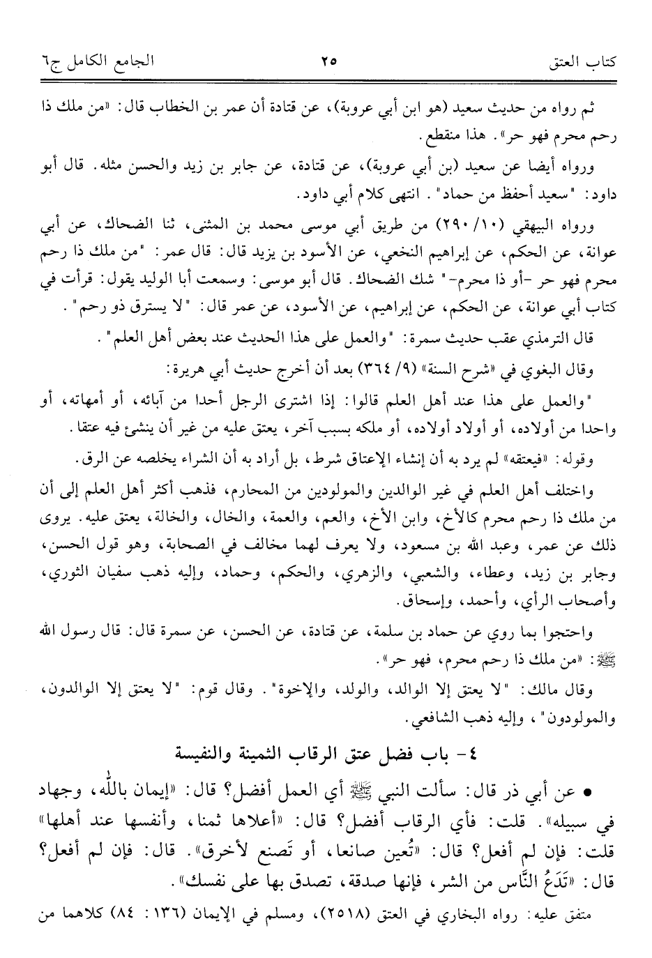 ٤ - باب فضل عتق الرقاب الثمينة والنفيسة