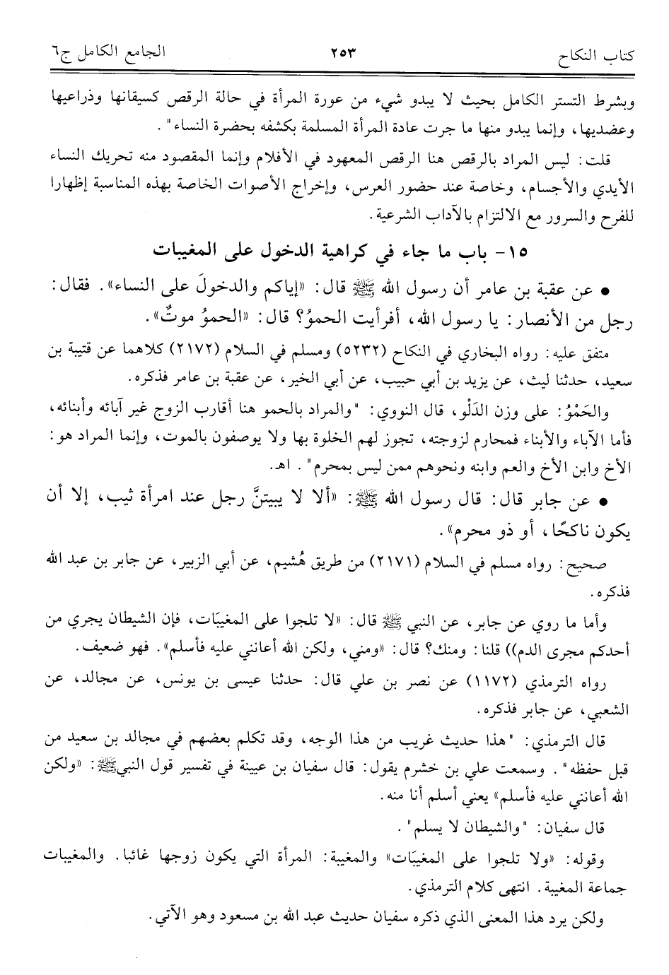 كتاب الجامع الكامل في الحديث الصحيح الشامل المرتب على أبواب الفقه (اسم الجزء: 6)