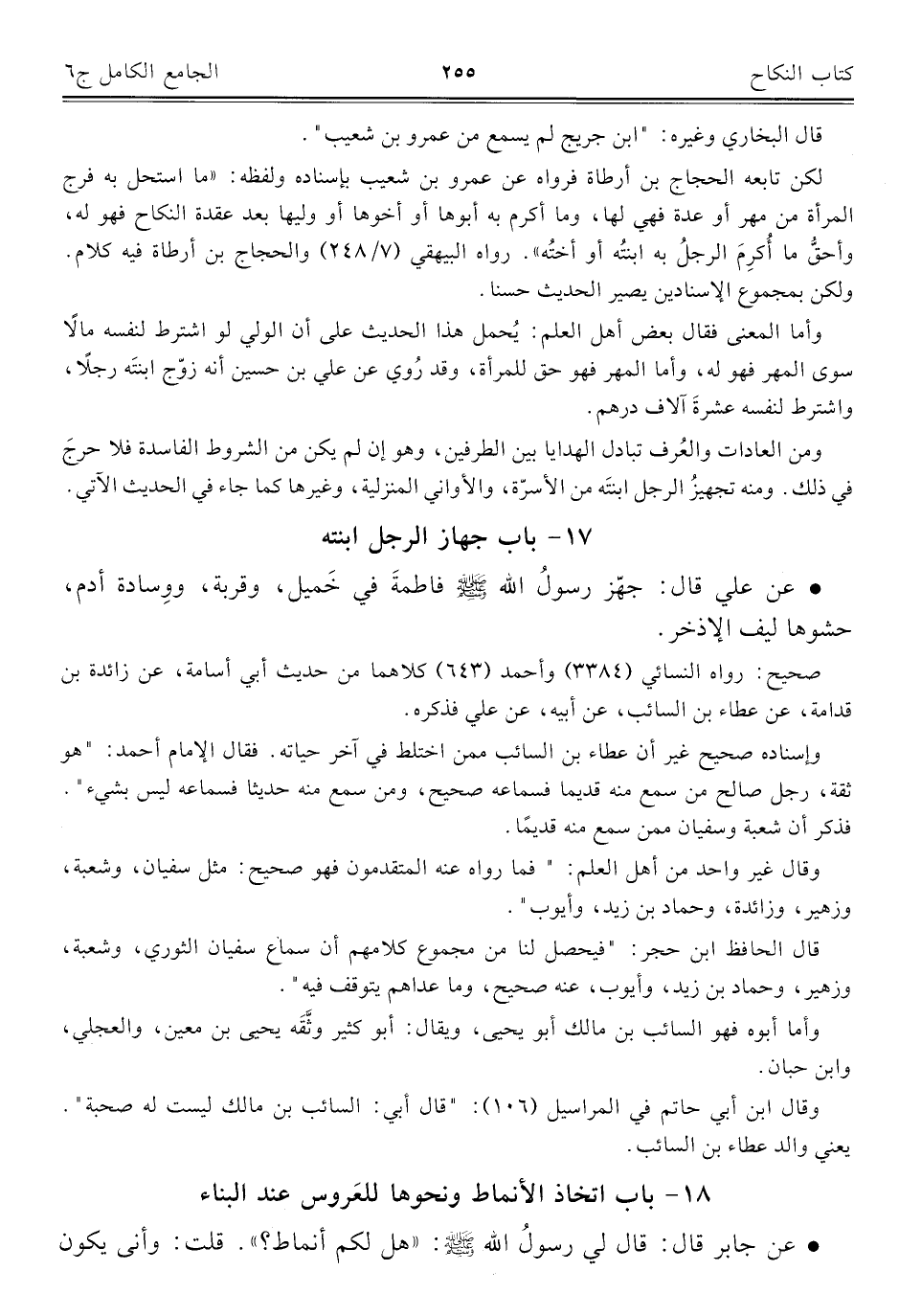 كتاب الجامع الكامل في الحديث الصحيح الشامل المرتب على أبواب الفقه (اسم الجزء: 6)