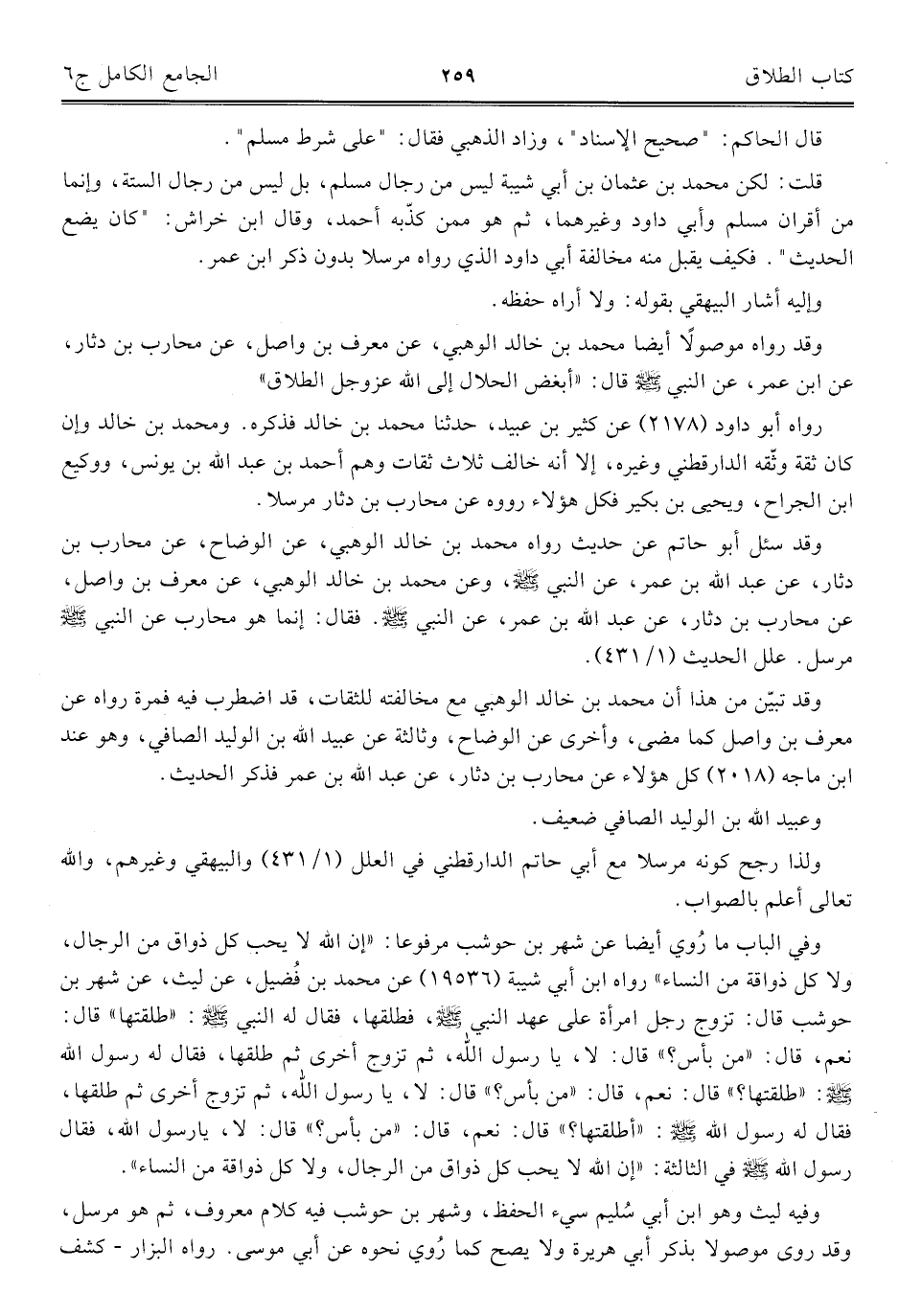 كتاب الجامع الكامل في الحديث الصحيح الشامل المرتب على أبواب الفقه (اسم الجزء: 6)