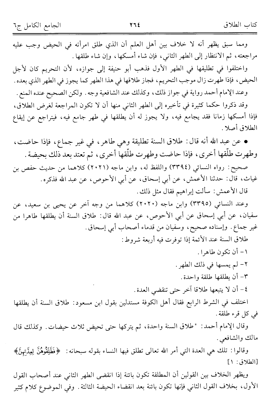 طلاق السنة عند الأئمة إذا توفرت فيه أربعة شروط: