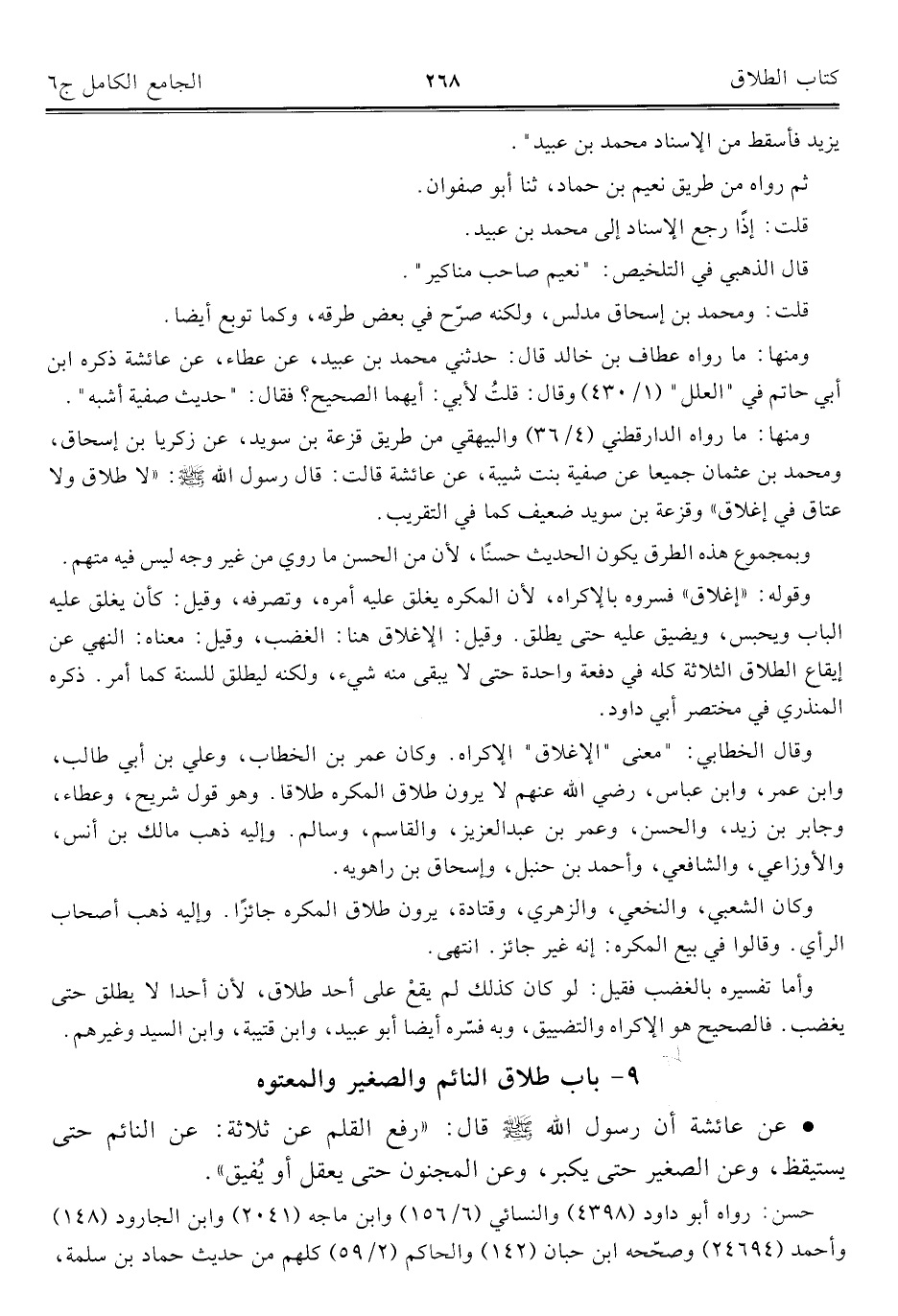 كتاب الجامع الكامل في الحديث الصحيح الشامل المرتب على أبواب الفقه (اسم الجزء: 6)
