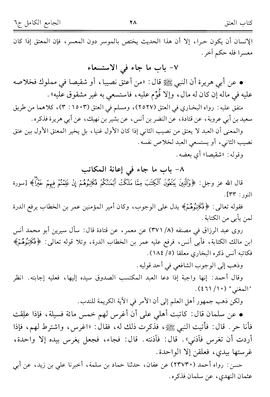كتاب الجامع الكامل في الحديث الصحيح الشامل المرتب على أبواب الفقه (اسم الجزء: 6)