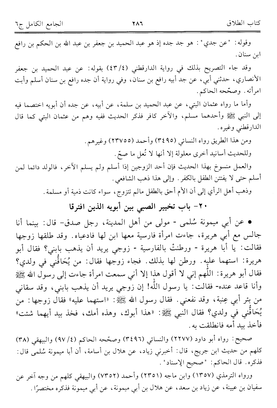 كتاب الجامع الكامل في الحديث الصحيح الشامل المرتب على أبواب الفقه (اسم الجزء: 6)