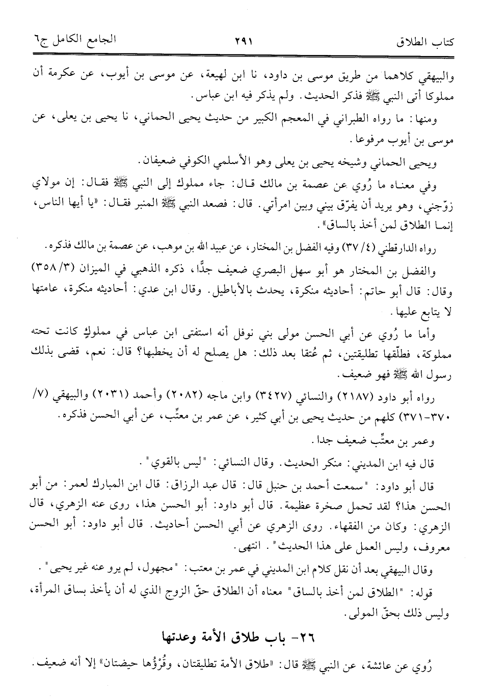 كتاب الجامع الكامل في الحديث الصحيح الشامل المرتب على أبواب الفقه (اسم الجزء: 6)