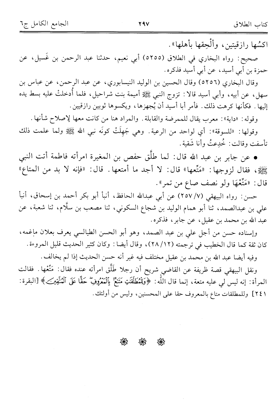 كتاب الجامع الكامل في الحديث الصحيح الشامل المرتب على أبواب الفقه (اسم الجزء: 6)