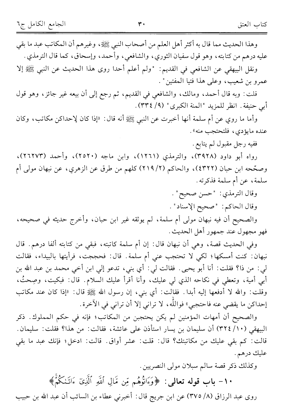 كتاب الجامع الكامل في الحديث الصحيح الشامل المرتب على أبواب الفقه (اسم الجزء: 6)