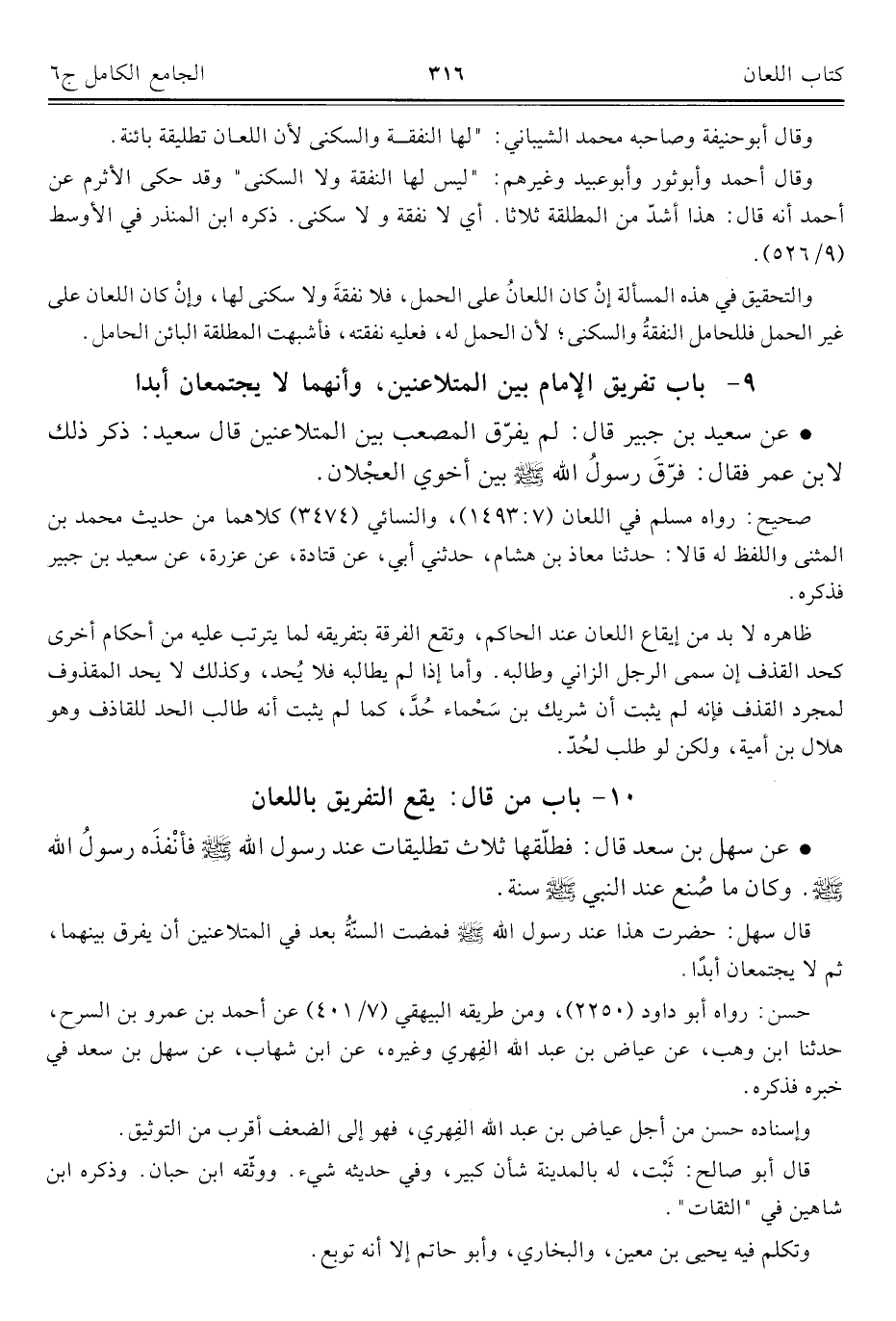 كتاب الجامع الكامل في الحديث الصحيح الشامل المرتب على أبواب الفقه (اسم الجزء: 6)