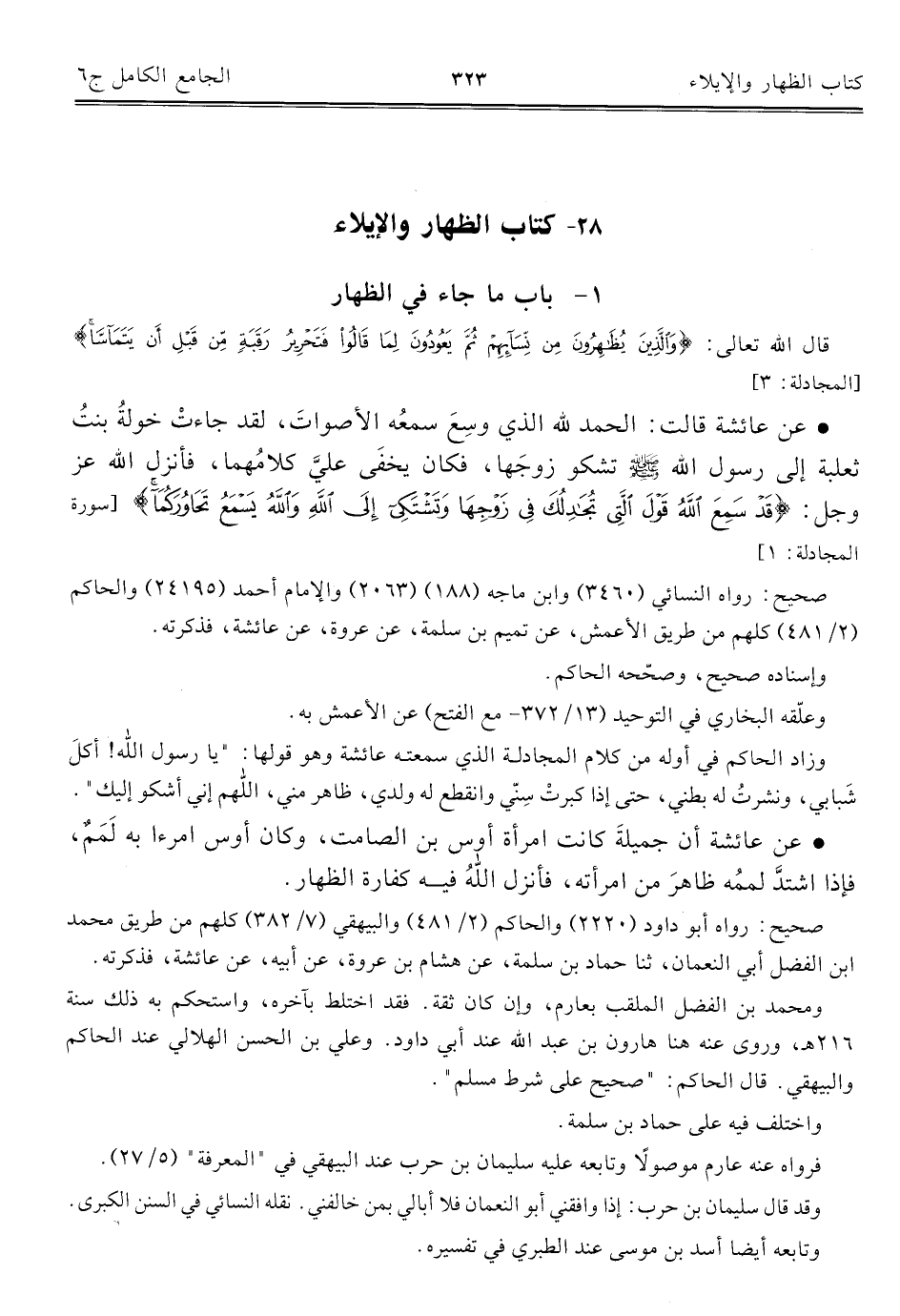 كتاب الجامع الكامل في الحديث الصحيح الشامل المرتب على أبواب الفقه (اسم الجزء: 6)