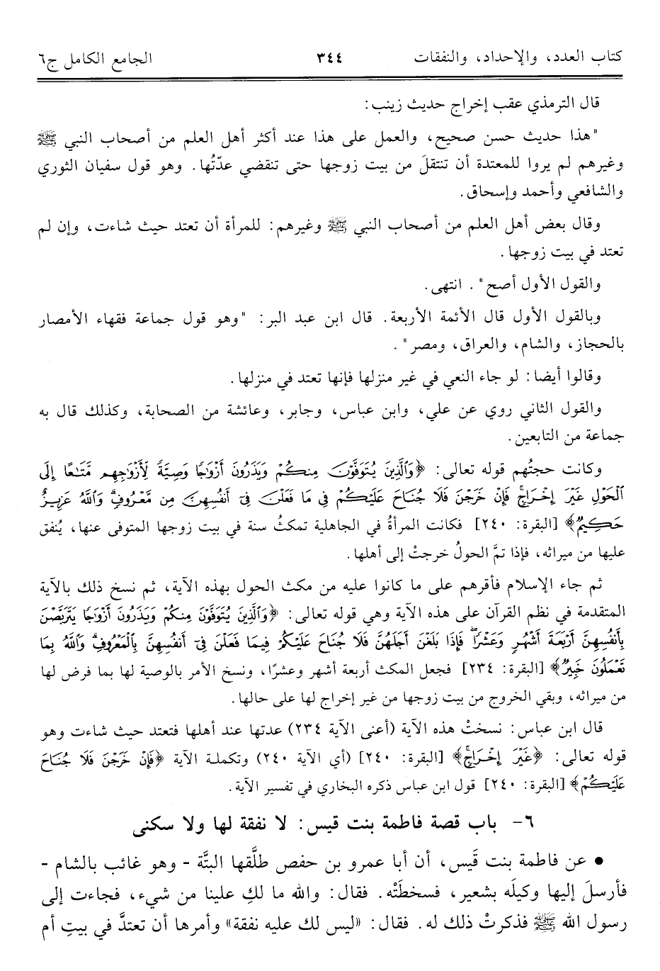 ٦ - باب قصة فاطمة بنت قيس: لا نفقة لها ولا سكنى