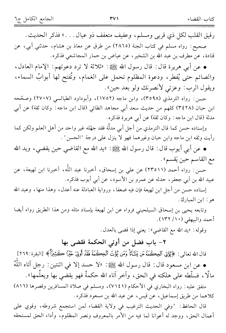 كتاب الجامع الكامل في الحديث الصحيح الشامل المرتب على أبواب الفقه (اسم الجزء: 6)