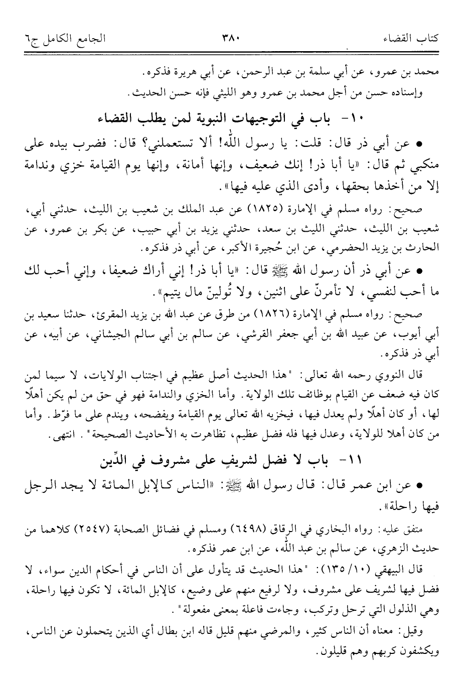 كتاب الجامع الكامل في الحديث الصحيح الشامل المرتب على أبواب الفقه (اسم الجزء: 6)