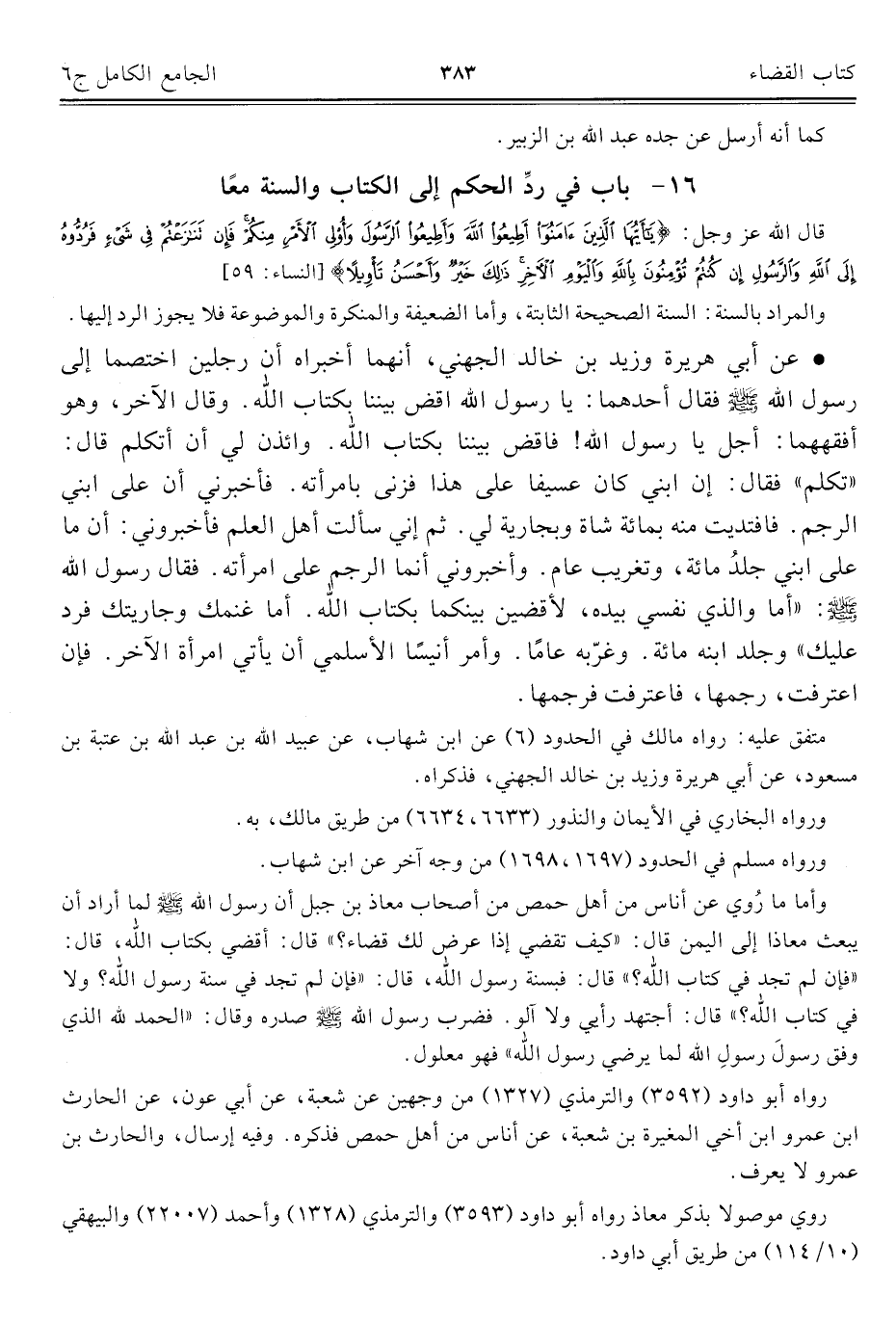 ١٦ - باب في ردِّ الحكم إلى الكتاب والسنة معًا