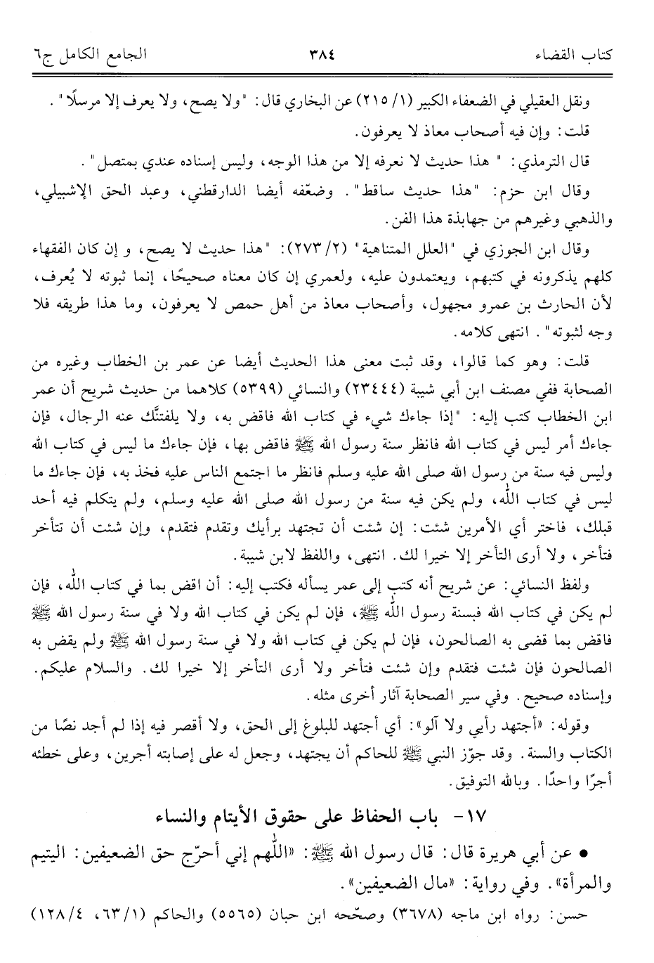 كتاب الجامع الكامل في الحديث الصحيح الشامل المرتب على أبواب الفقه (اسم الجزء: 6)