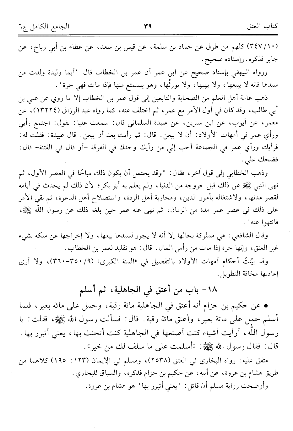 كتاب الجامع الكامل في الحديث الصحيح الشامل المرتب على أبواب الفقه (اسم الجزء: 6)