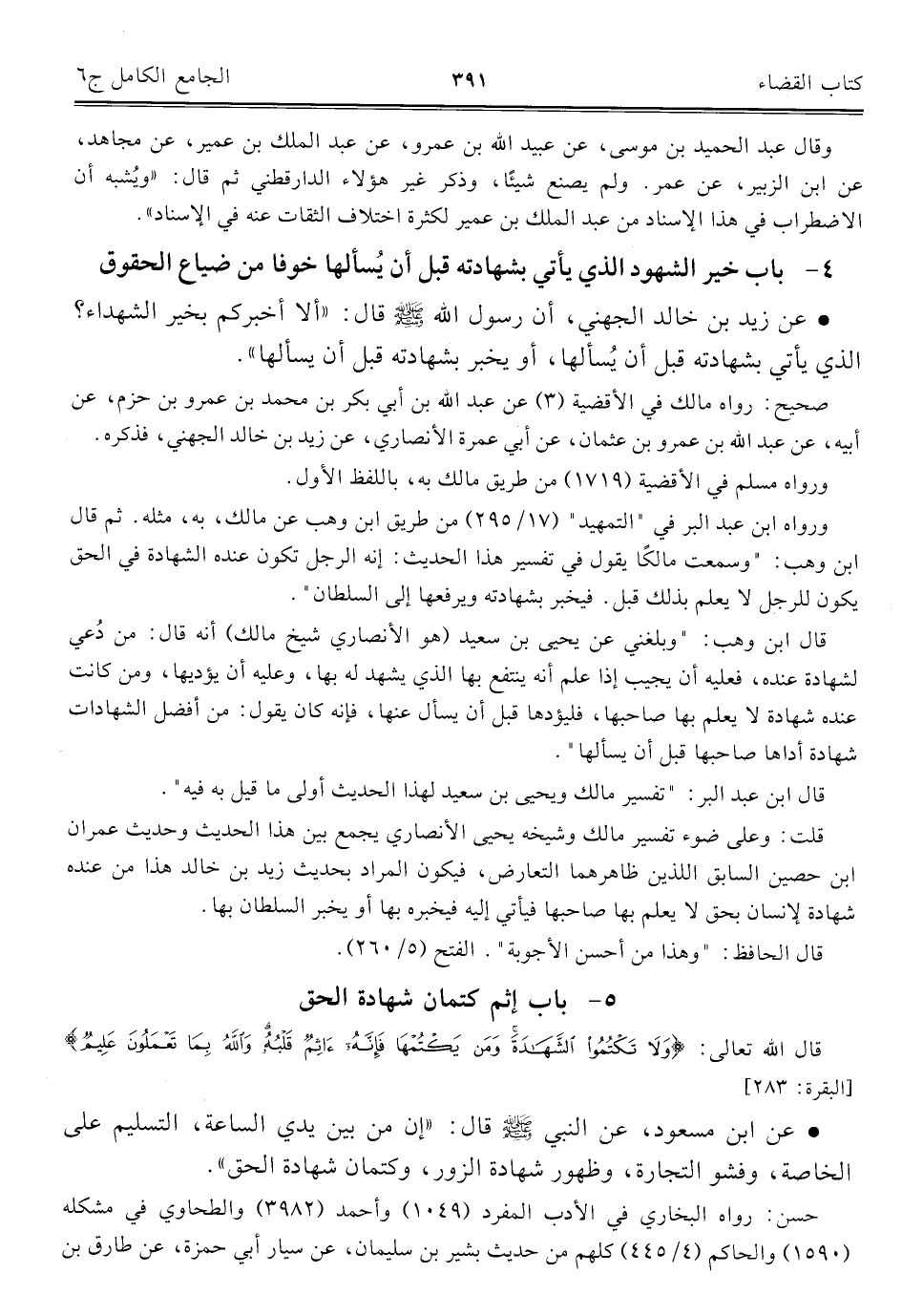 ٤ - باب خير الشهود الذي يأتي بشهادته قبل أن يُسألها خوفا من ضياع الحقوق