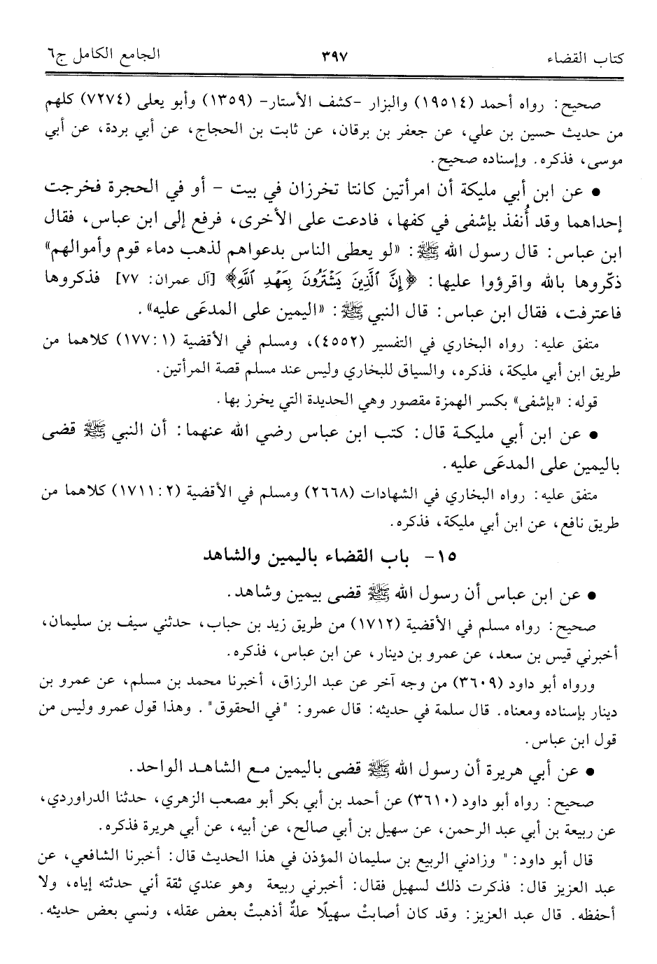 كتاب الجامع الكامل في الحديث الصحيح الشامل المرتب على أبواب الفقه (اسم الجزء: 6)