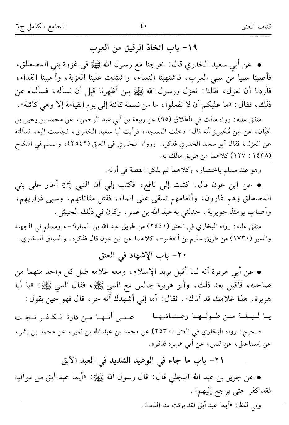 كتاب الجامع الكامل في الحديث الصحيح الشامل المرتب على أبواب الفقه (اسم الجزء: 6)