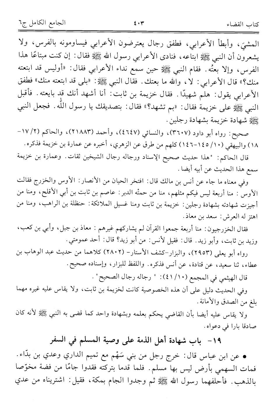 كتاب الجامع الكامل في الحديث الصحيح الشامل المرتب على أبواب الفقه (اسم الجزء: 6)