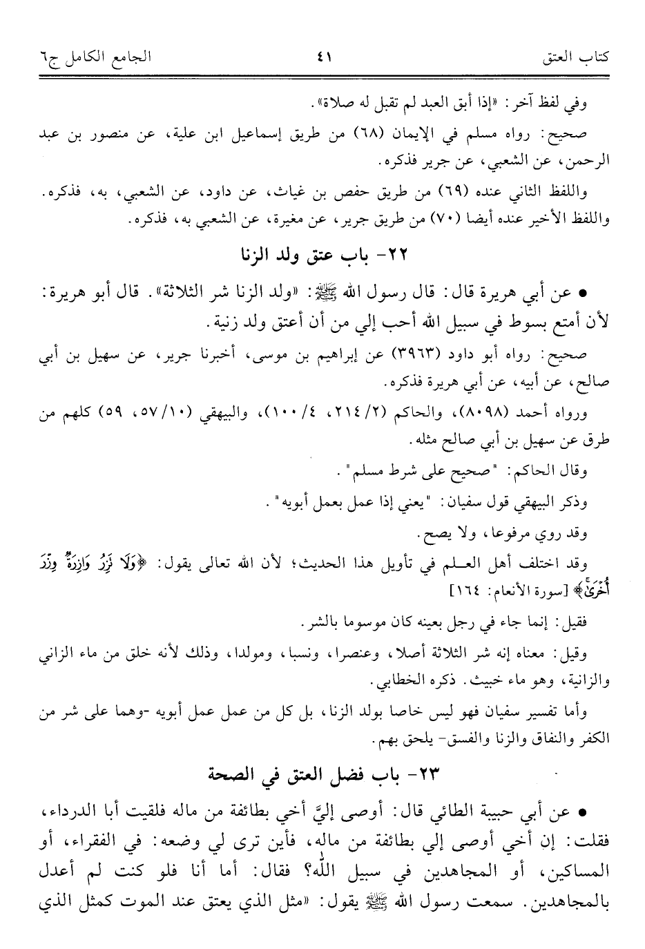 كتاب الجامع الكامل في الحديث الصحيح الشامل المرتب على أبواب الفقه (اسم الجزء: 6)