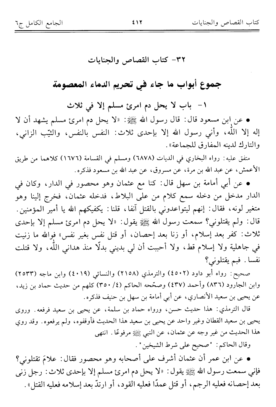 جموع أبواب ما جاء في تحريم الدماء المعصومة