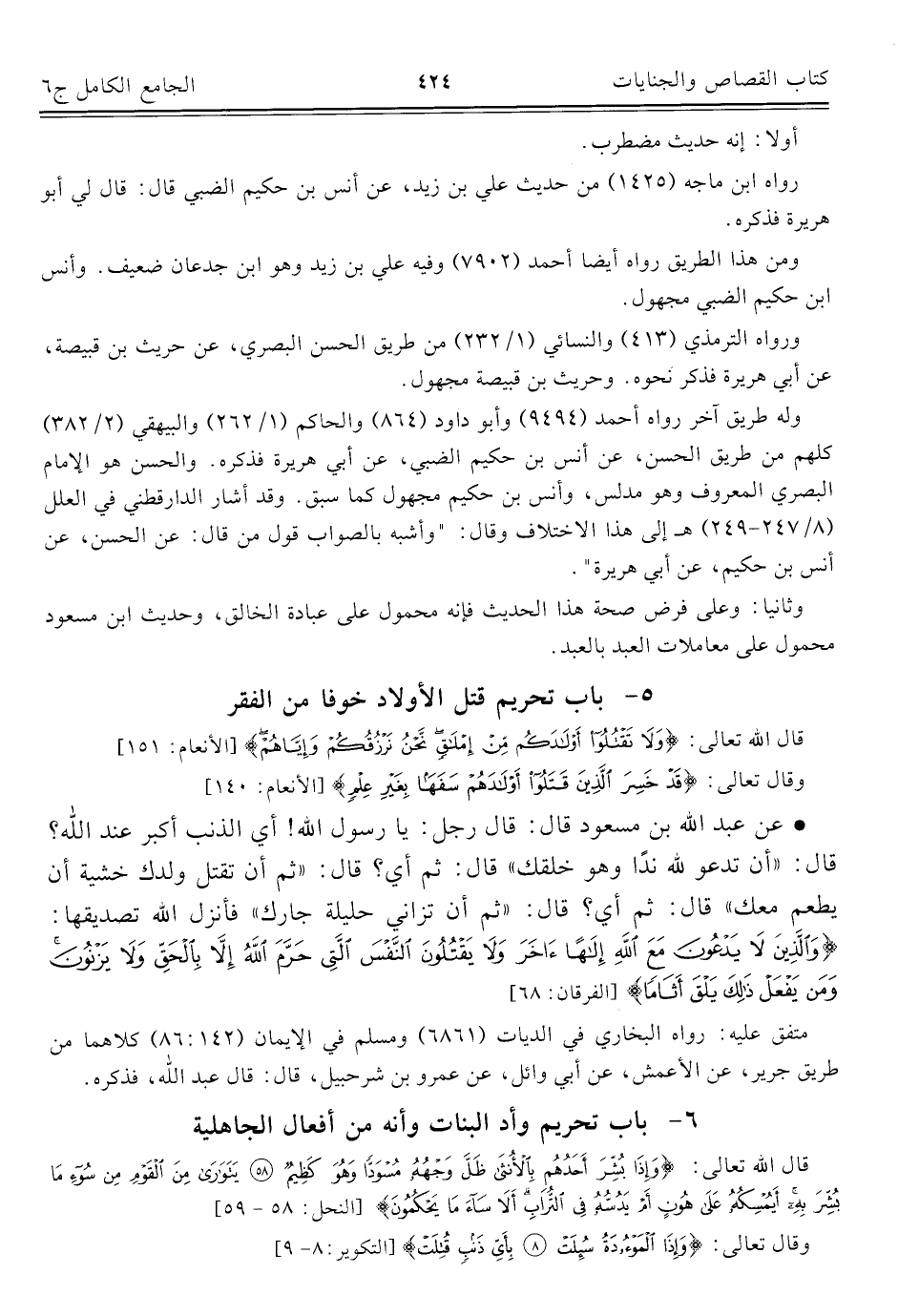 كتاب الجامع الكامل في الحديث الصحيح الشامل المرتب على أبواب الفقه (اسم الجزء: 6)