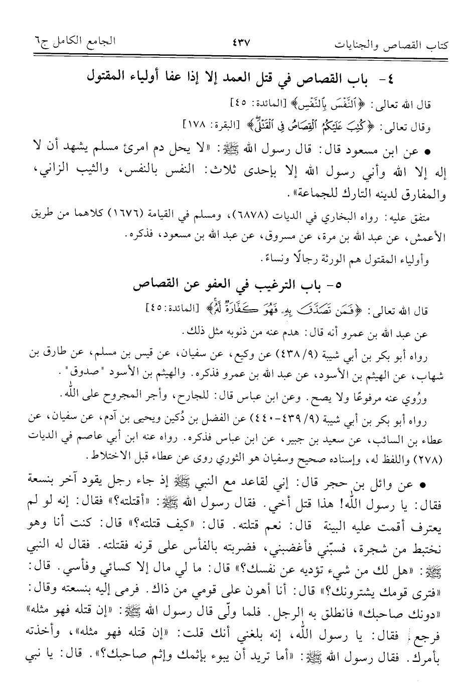 كتاب الجامع الكامل في الحديث الصحيح الشامل المرتب على أبواب الفقه (اسم الجزء: 6)