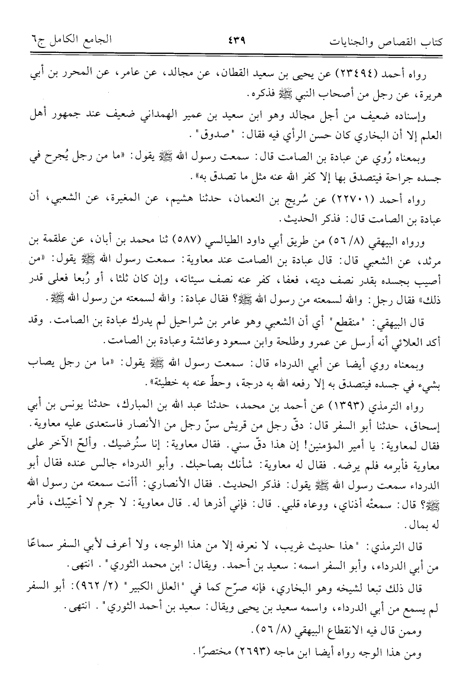 كتاب الجامع الكامل في الحديث الصحيح الشامل المرتب على أبواب الفقه (اسم الجزء: 6)