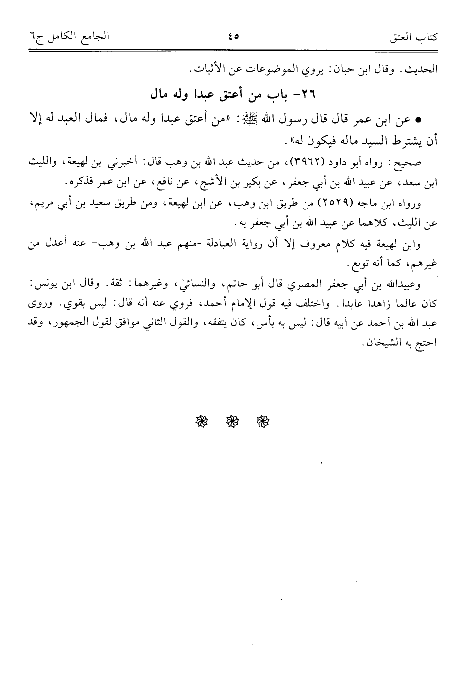 كتاب الجامع الكامل في الحديث الصحيح الشامل المرتب على أبواب الفقه (اسم الجزء: 6)