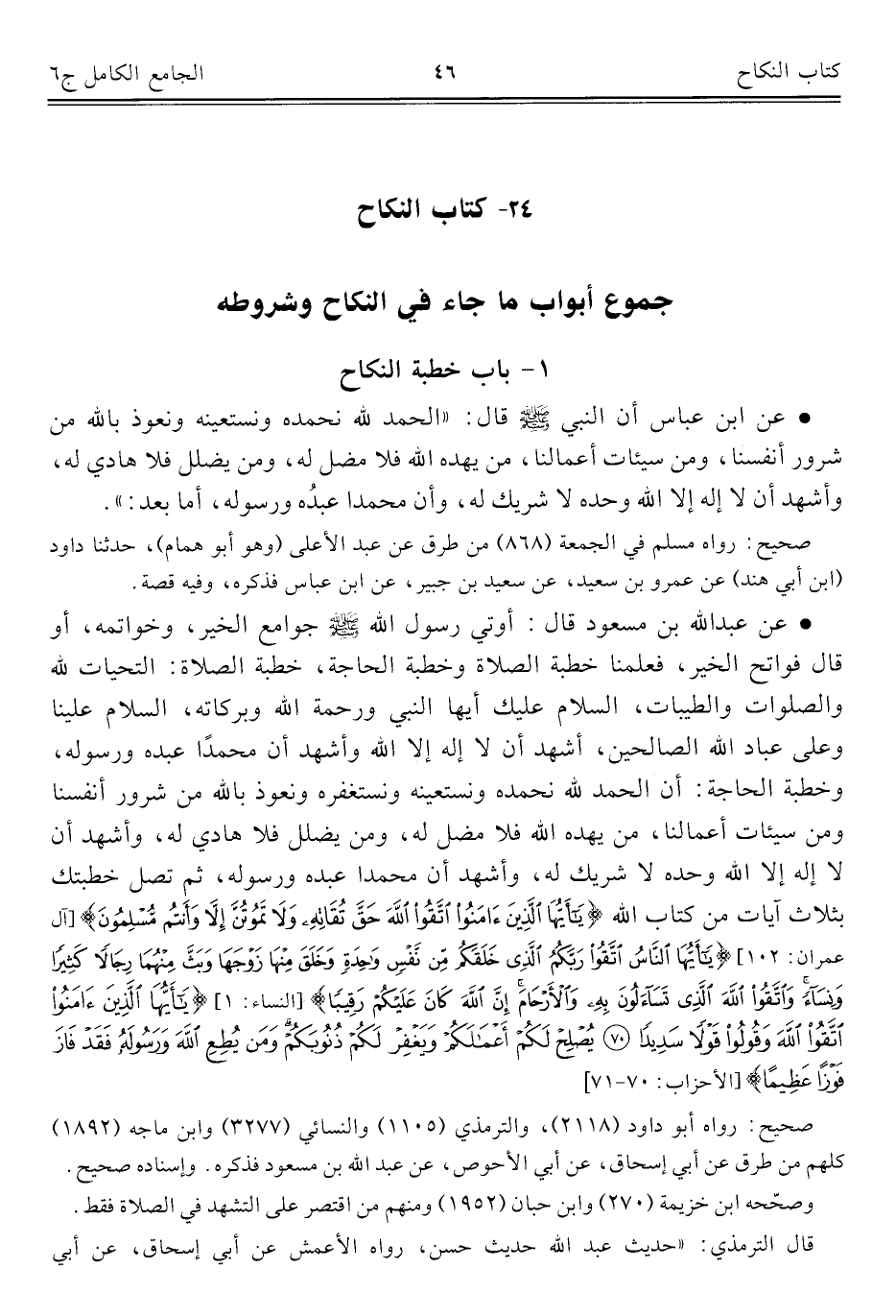 كتاب الجامع الكامل في الحديث الصحيح الشامل المرتب على أبواب الفقه (اسم الجزء: 6)