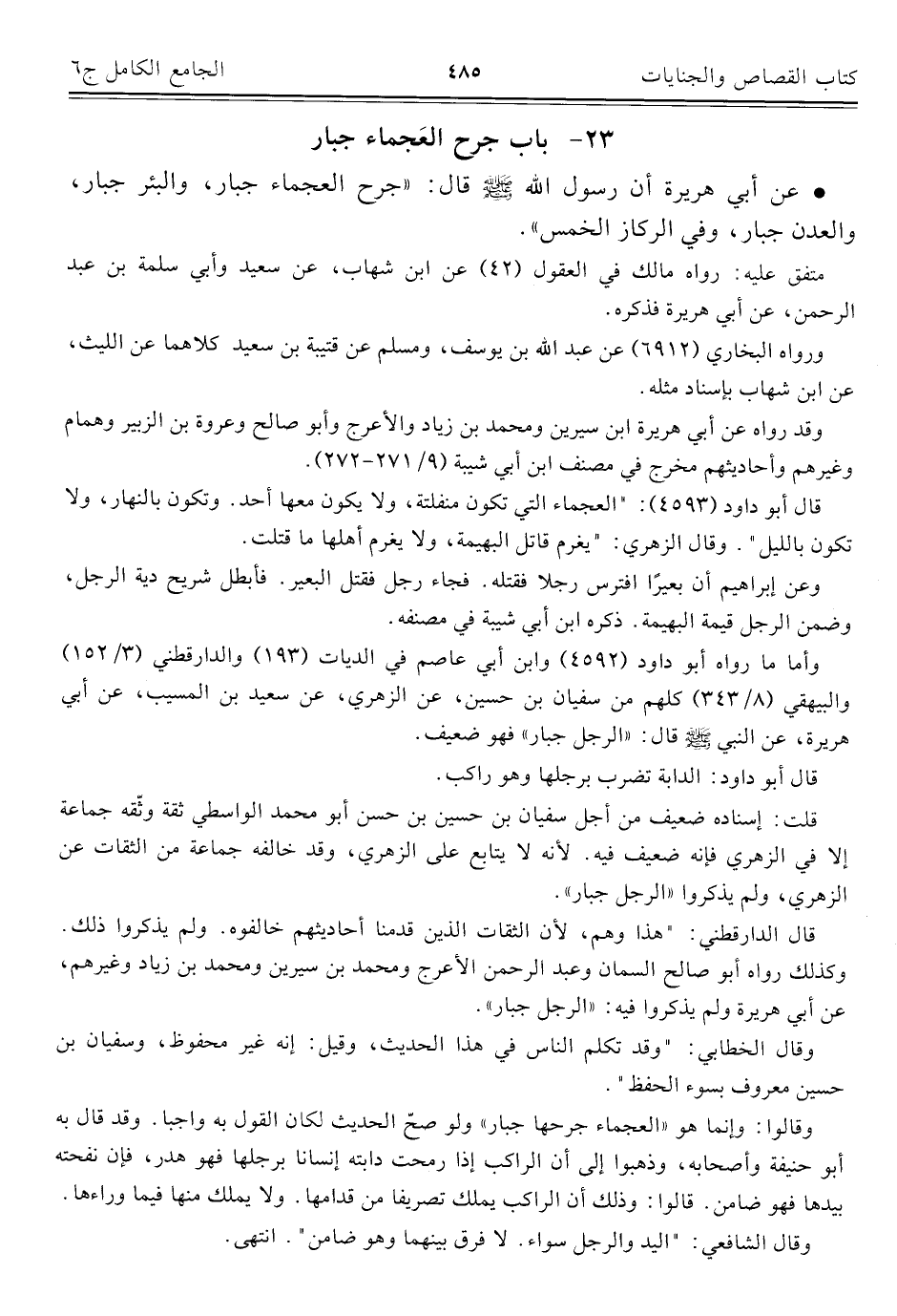 كتاب الجامع الكامل في الحديث الصحيح الشامل المرتب على أبواب الفقه (اسم الجزء: 6)