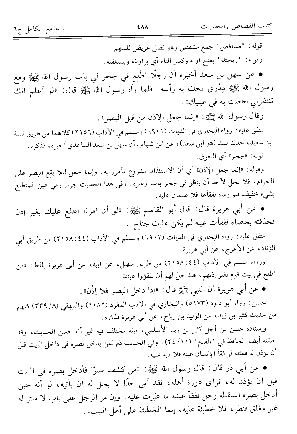 كتاب الجامع الكامل في الحديث الصحيح الشامل المرتب على أبواب الفقه (اسم الجزء: 6)