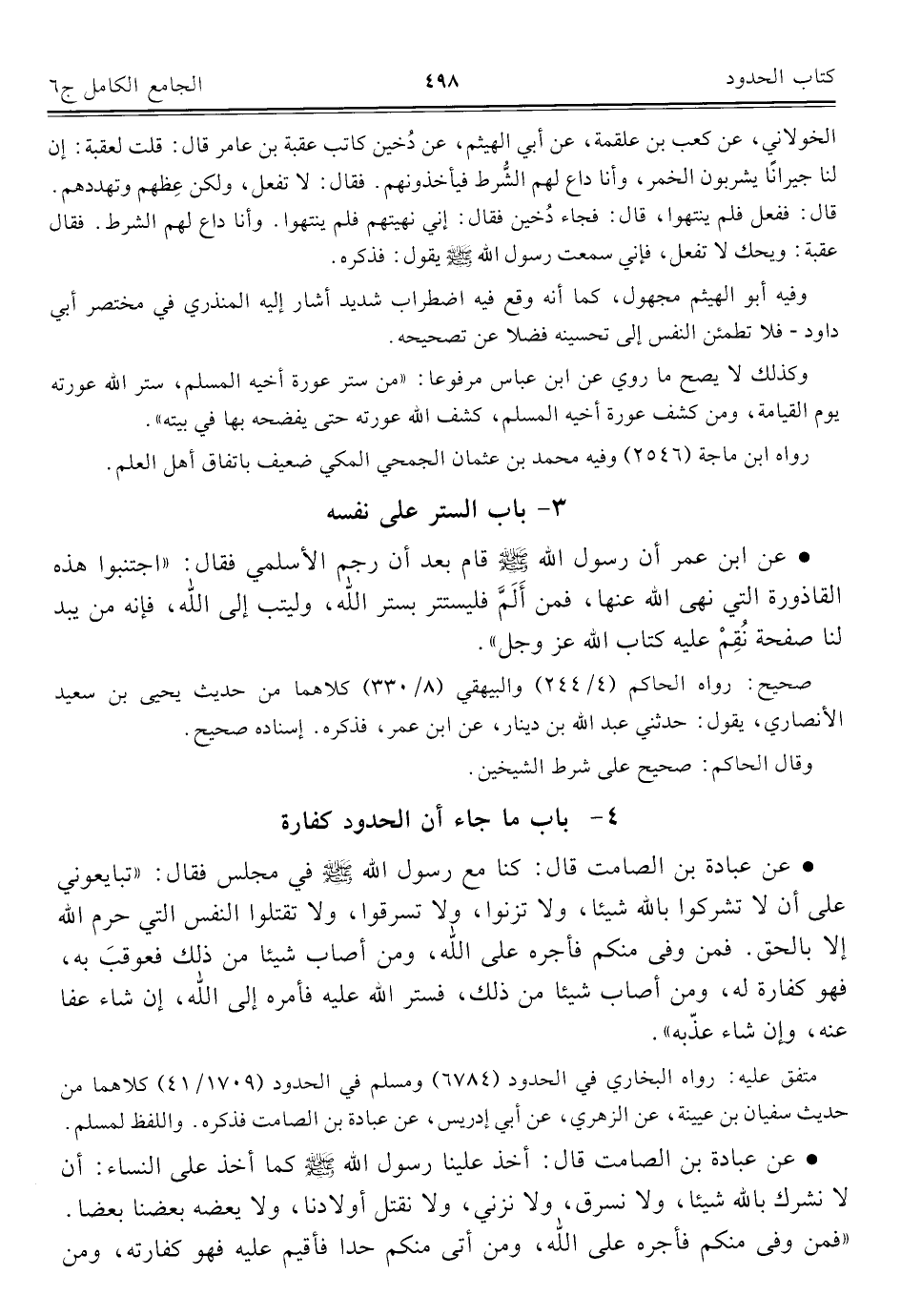 كتاب الجامع الكامل في الحديث الصحيح الشامل المرتب على أبواب الفقه (اسم الجزء: 6)