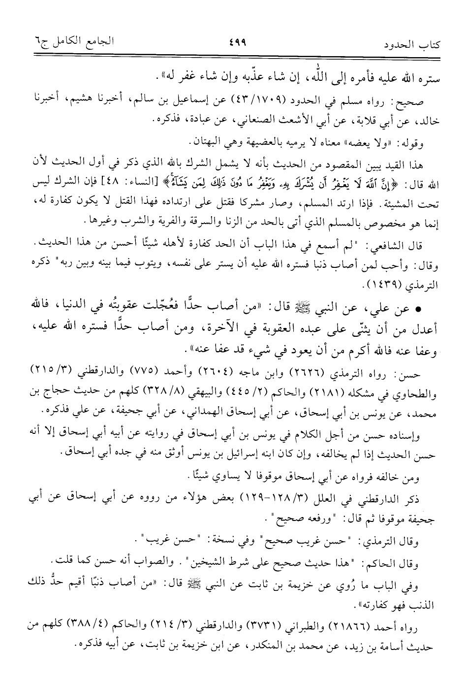 كتاب الجامع الكامل في الحديث الصحيح الشامل المرتب على أبواب الفقه (اسم الجزء: 6)