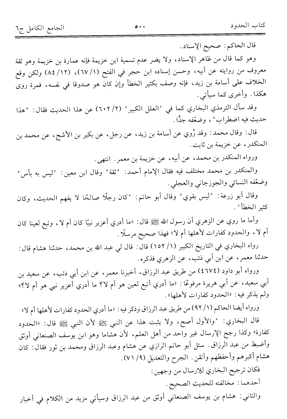 كتاب الجامع الكامل في الحديث الصحيح الشامل المرتب على أبواب الفقه (اسم الجزء: 6)