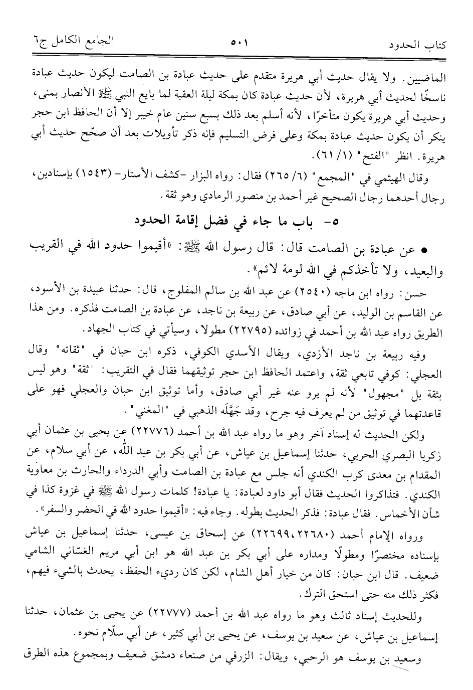 كتاب الجامع الكامل في الحديث الصحيح الشامل المرتب على أبواب الفقه (اسم الجزء: 6)