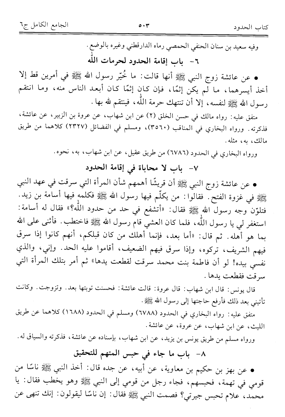 كتاب الجامع الكامل في الحديث الصحيح الشامل المرتب على أبواب الفقه (اسم الجزء: 6)