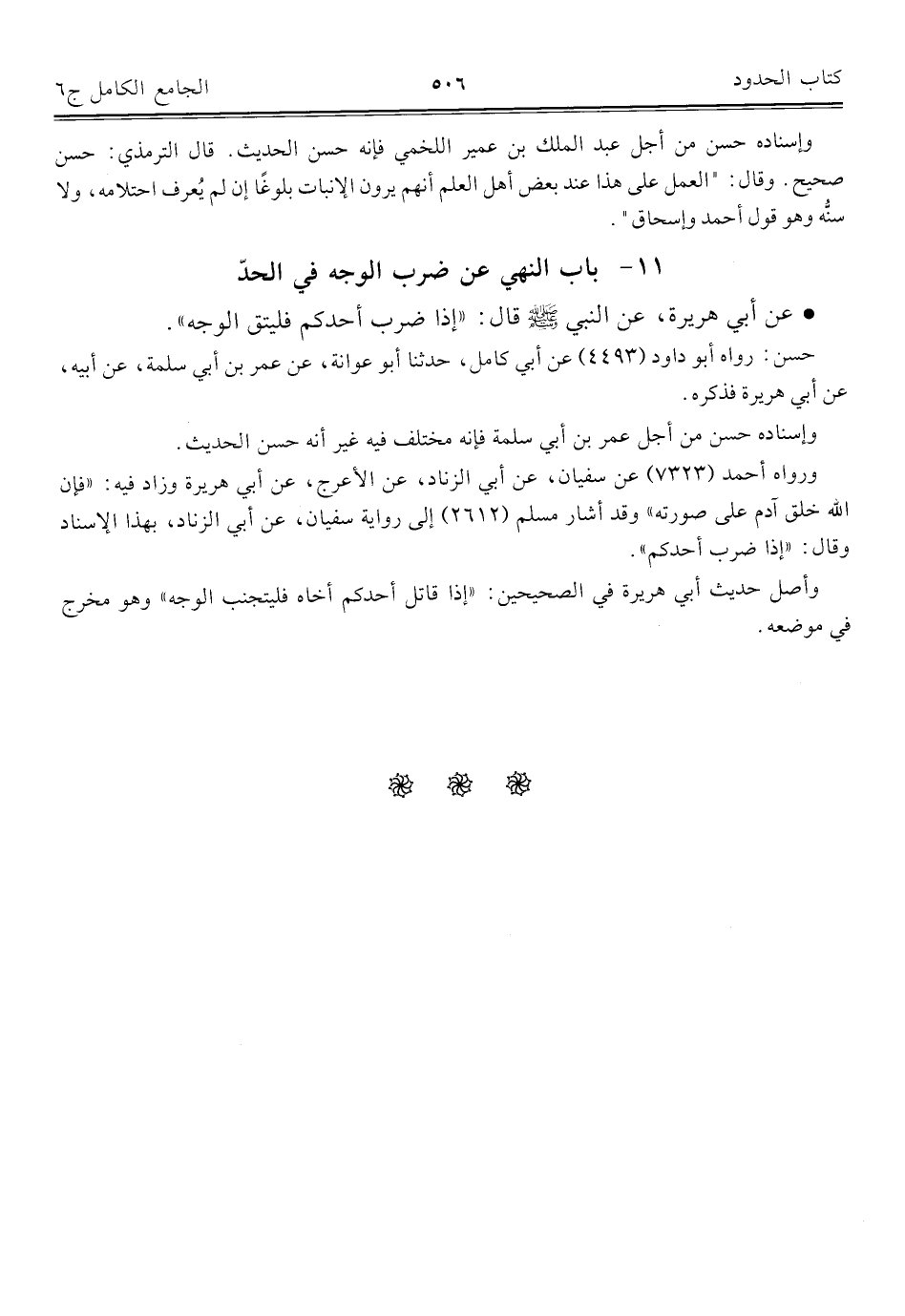 كتاب الجامع الكامل في الحديث الصحيح الشامل المرتب على أبواب الفقه (اسم الجزء: 6)
