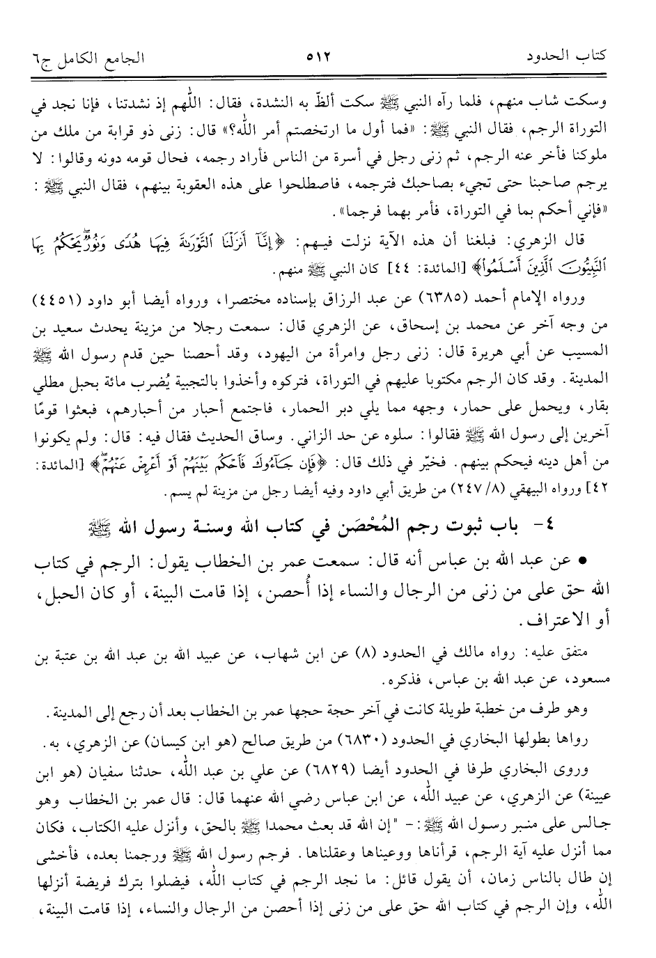 ٤ - باب ثبوت رجم المُحْصَن في كتاب الله وسنة رسول الله - صلى الله عليه وسلم -