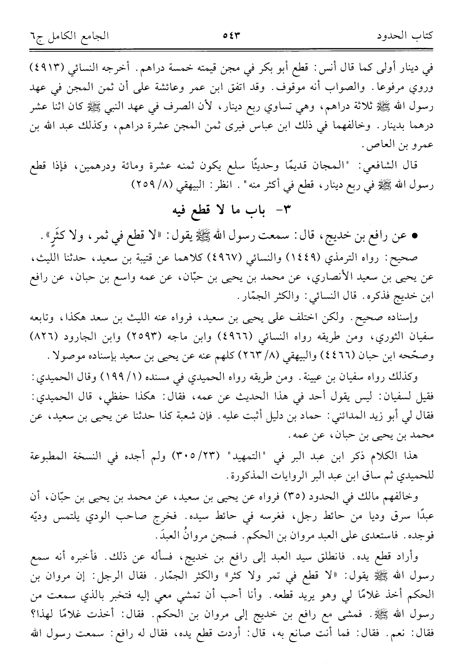 كتاب الجامع الكامل في الحديث الصحيح الشامل المرتب على أبواب الفقه (اسم الجزء: 6)