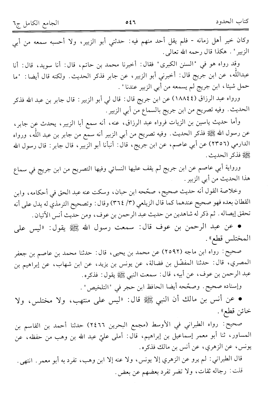 كتاب الجامع الكامل في الحديث الصحيح الشامل المرتب على أبواب الفقه (اسم الجزء: 6)