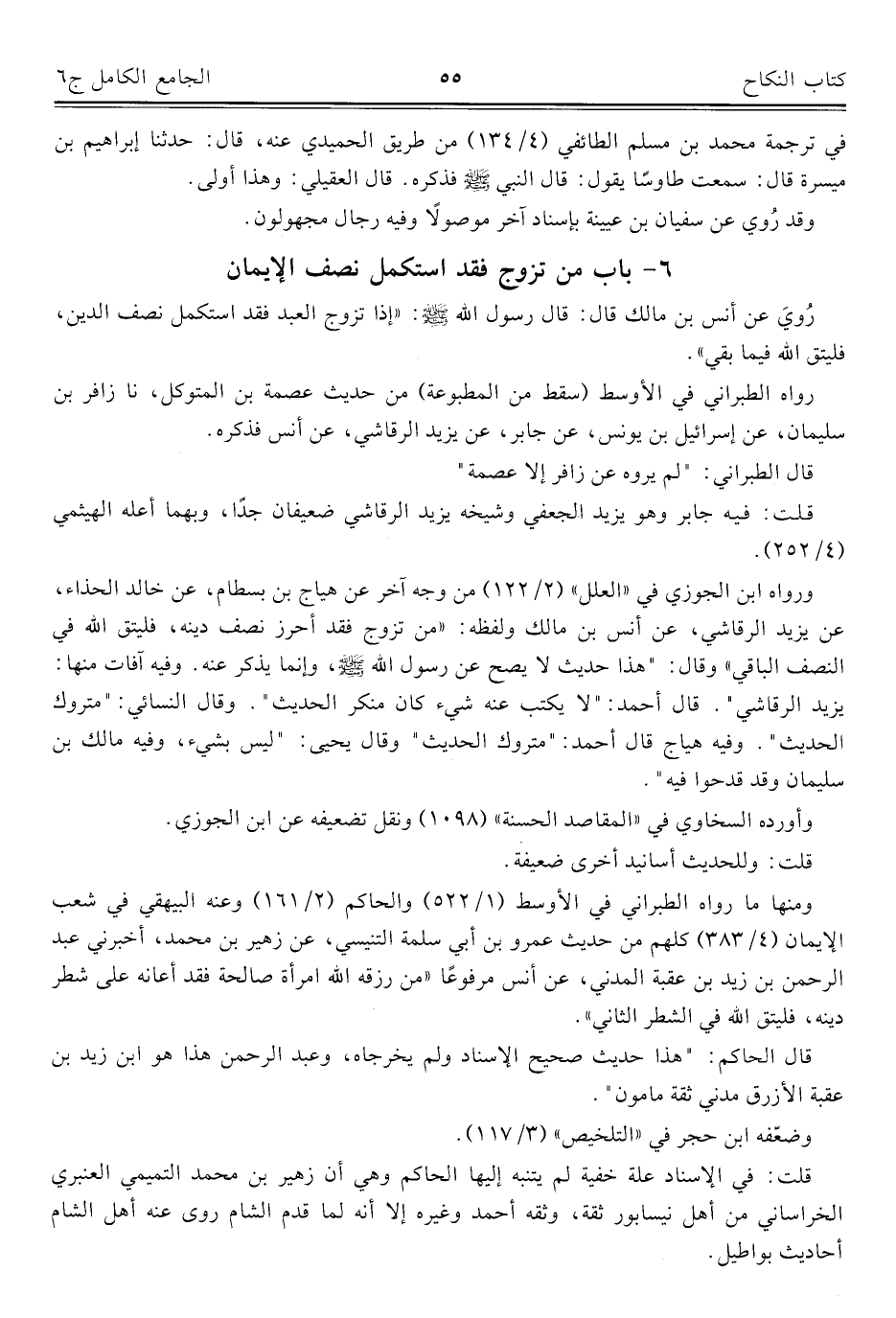 ٦ - باب من تزوج فقد استكمل نصف الإيمان