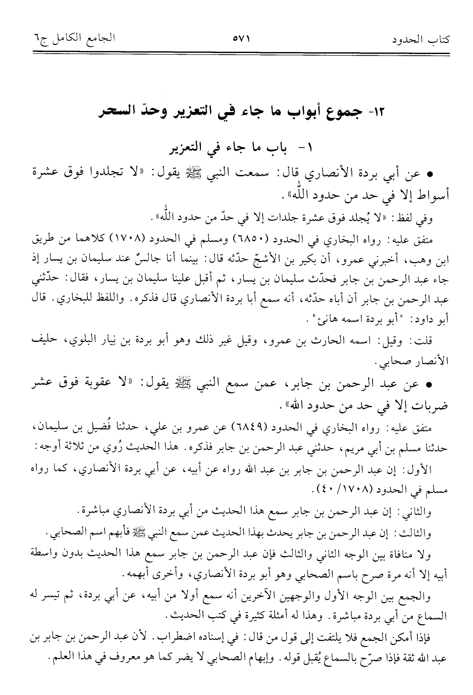كتاب الجامع الكامل في الحديث الصحيح الشامل المرتب على أبواب الفقه (اسم الجزء: 6)