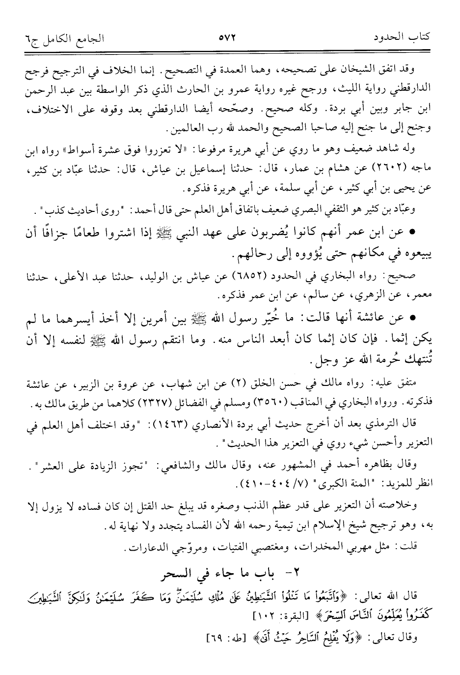 كتاب الجامع الكامل في الحديث الصحيح الشامل المرتب على أبواب الفقه (اسم الجزء: 6)