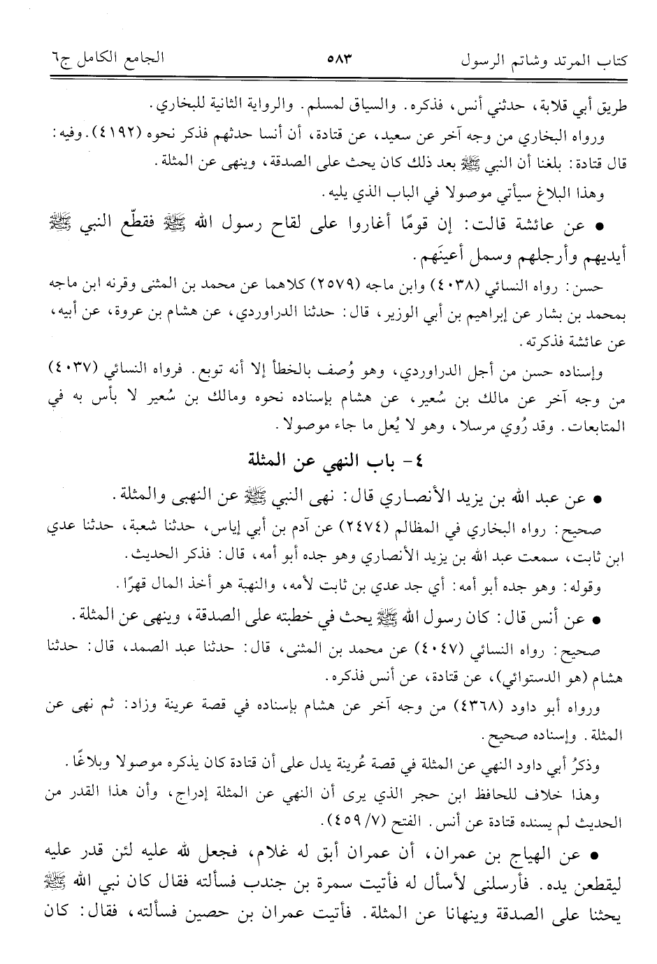 كتاب الجامع الكامل في الحديث الصحيح الشامل المرتب على أبواب الفقه (اسم الجزء: 6)