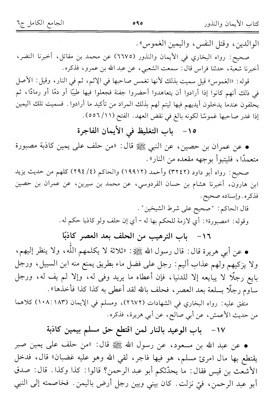 كتاب الجامع الكامل في الحديث الصحيح الشامل المرتب على أبواب الفقه (اسم الجزء: 6)
