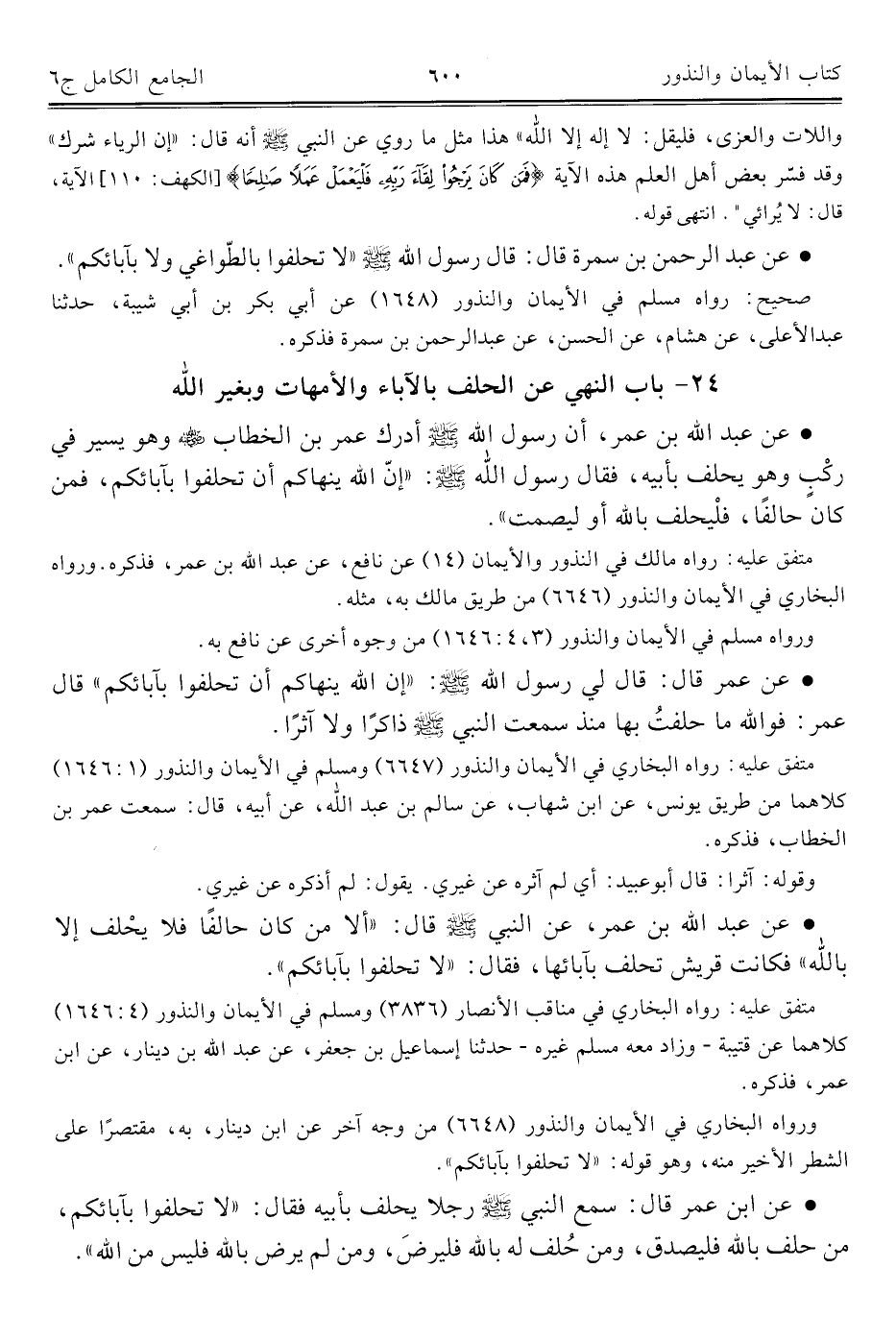 ورواه مسلم في الأيمان والنذور (٣، ٤: ١٦٤٦) من وجوه أخرى عن نافع به.